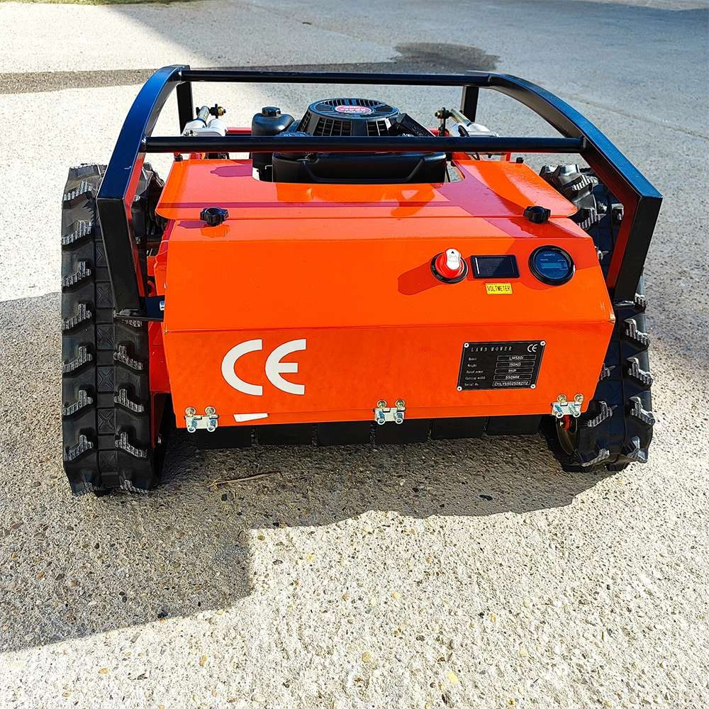 A Rarlon LM-550 távirányítású fűnyíró kompakt, lánctalpas kialakításával ideális választás közepesen elhanyagolt területek, rézsűk és nehezen megközelíthető zöldfelületek karbantartására.